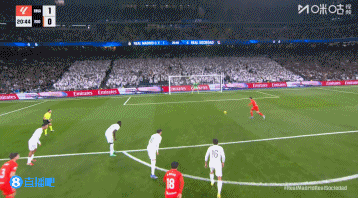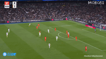 第45+4分钟,皇马后场长传攻击 ,右路巴尔韦德跟进横扫门前,贡萨洛绝佳机会门前踢飞↓