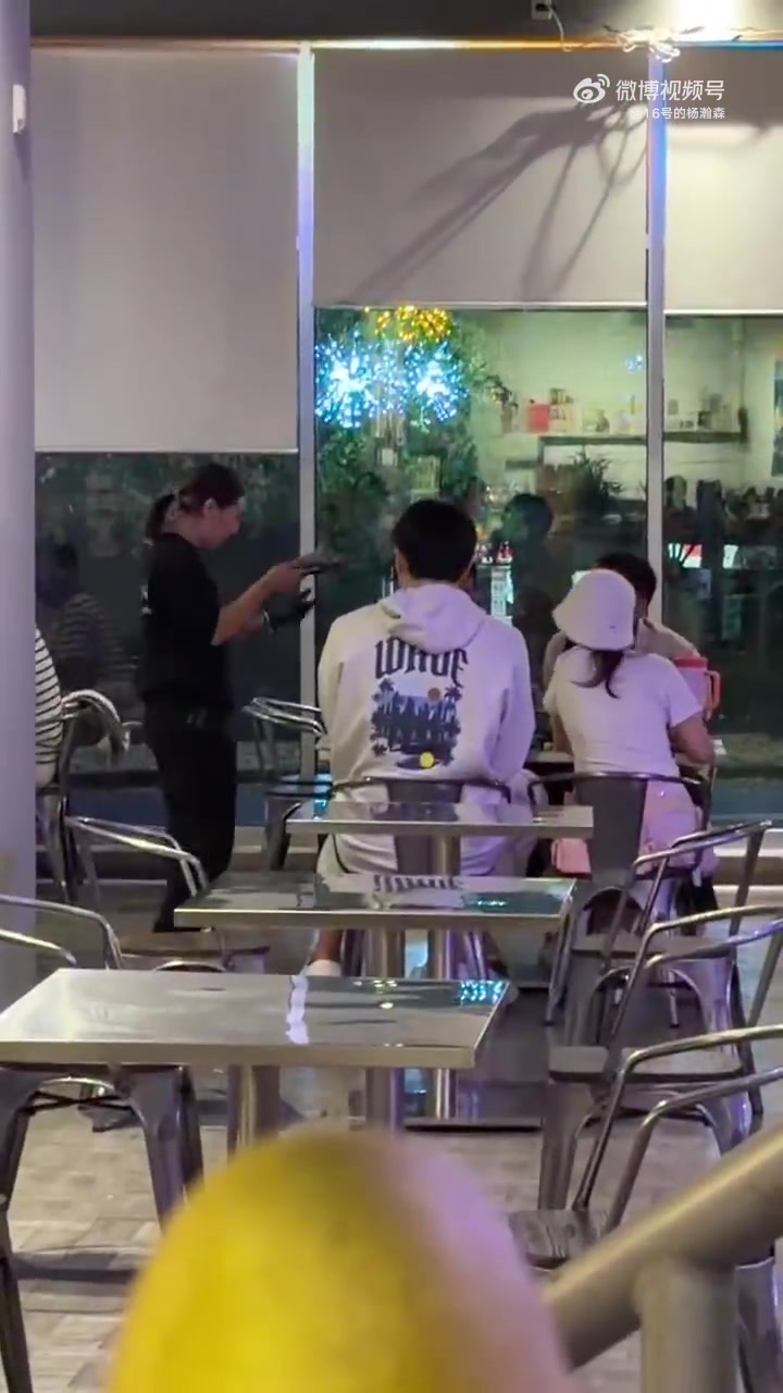 赛后在波特兰当地的烧烤店,球迷偶遇杨瀚森带着女友、翻译以及经纪人外出吃烧烤。