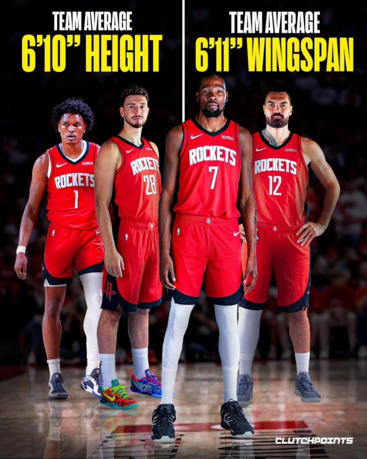 除了身高、臂展nba中文官网,火箭全队平均体重约109公斤(241磅),同样让他们比他们将面对的大多数对手都更重、更硬。