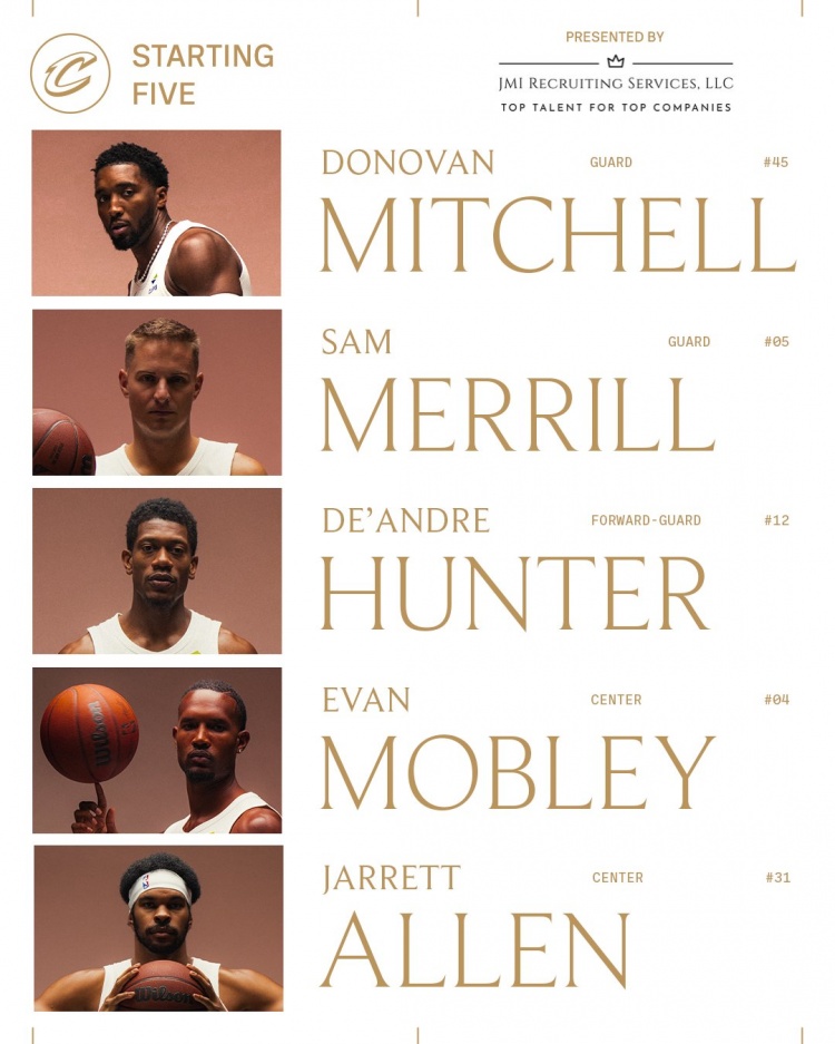 骑士杆位出炉:米切尔、梅里尔、亨特、莫布里、阿伦nba中文官网。