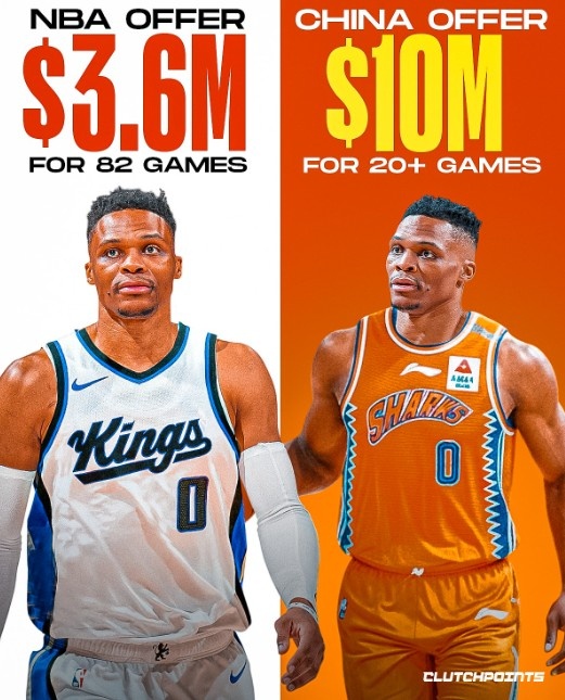 国王记者:威少可能收到了一份中国球队的报价 薪资超丰厚直播吧直播吧