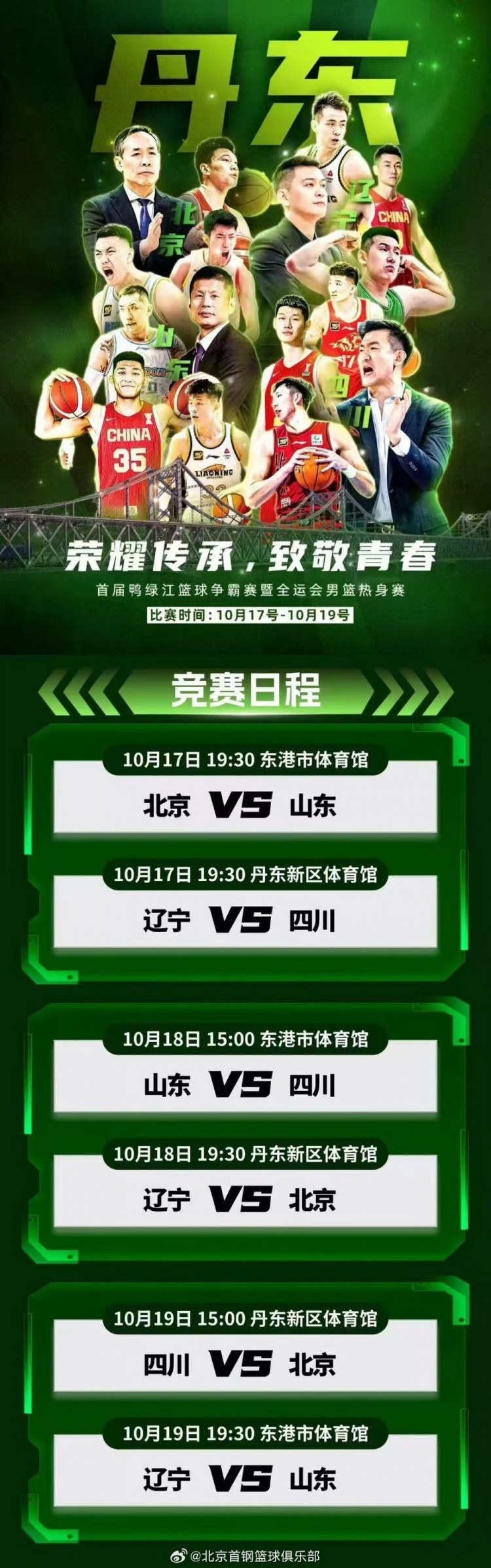 10月17日讯 北京队官博更新,分享丹东全运赛前热身 赛具体赛程。