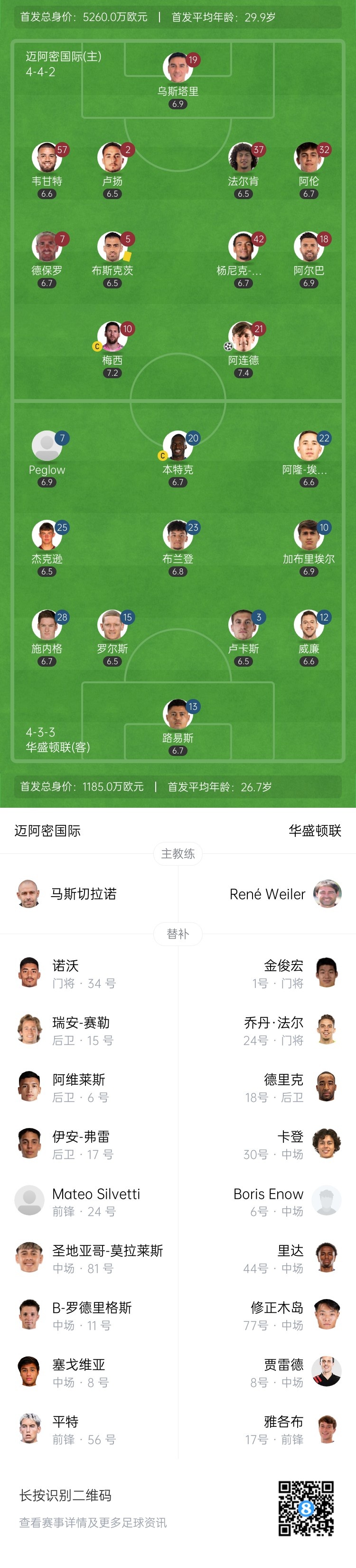 第35分钟,梅西后场得球,向前一脚过顶打穿华盛顿联合防守线!阿连德前插形成单刀赴会!右脚冷静推射破门,迈阿密国际1-0领跑 华盛顿联↓
