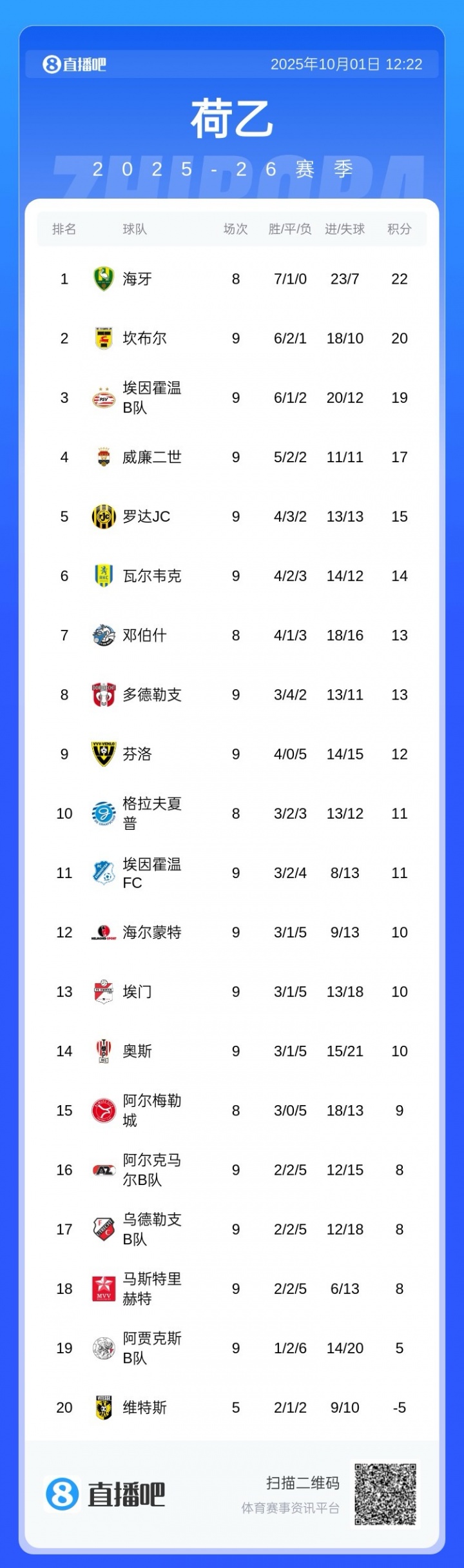 10月01日讯 今日荷乙一场赛事 ,维特斯4-2埃门。