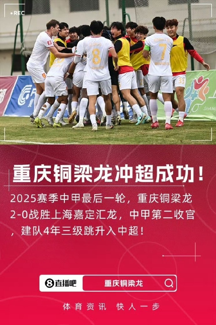 11月8日讯 中甲赛季收官战结束意甲AC米兰新闻,重庆铜梁龙2-0战胜上海嘉定汇龙,最终排名积分榜第二,冲超成功。