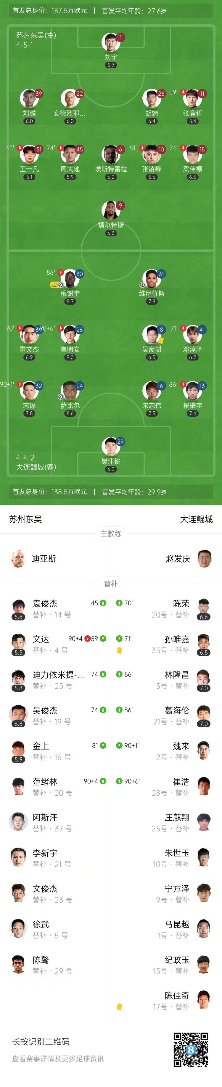 全场赛事 结束,苏州东吴0-4大连鲲城。