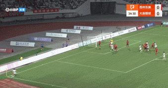 第61分钟,大连前场定位球吊入危险区域 险些造成后场球员乌龙球。↓