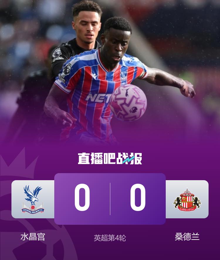 直播吧9月13日讯 北京时间9月13日晚上22:00,英超第4轮,水晶宫坐镇塞尔赫斯特公园运动活动 场 迎战桑德兰。上半场,皮诺失单刀赴会。下半场,镰田大地远射造威胁,罗夫斯屡屡救主。全场结束,水晶宫0-0桑德兰。本场过后足球新闻头条,水晶宫1胜3平积6分排名第七,桑德兰2胜1平1负积7分排名第五。