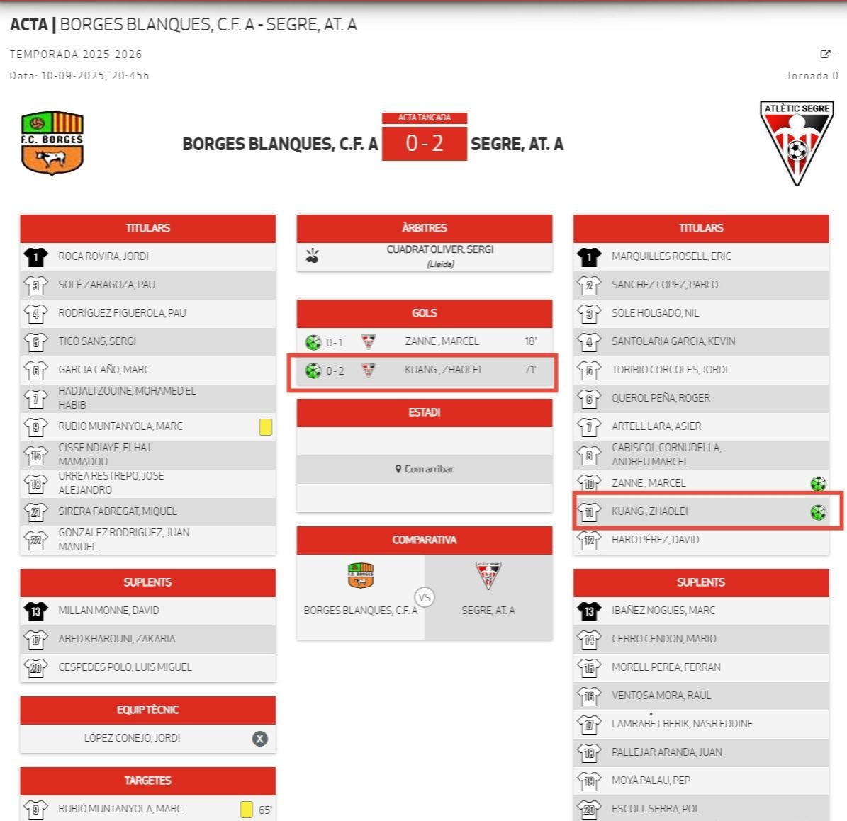 2025年9月14日,据知名博主“莱斯特城的小狐狸”报道,比利亚雷亚尔U16A队6-1大胜莱万特U16队,15岁的中国留洋球员刘凯源杆位出场并取得得分 ;赛前热身 赛足球新闻热点头条,塞格雷竞赛 U19A队2-1莱里达省AGRAMUNT镇队,16岁的中国球员邝兆镭1人独进2球,帮助球队取得了获胜 。2名中国留洋球员2场进了3球,这对于中国古代足球 来说是个好的消息,至少让人看到了一些希望。
