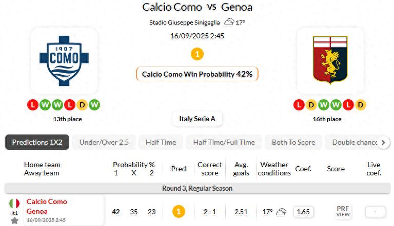 Calcio Como have been scoring 2.00 goals on average in their home games in Serie A