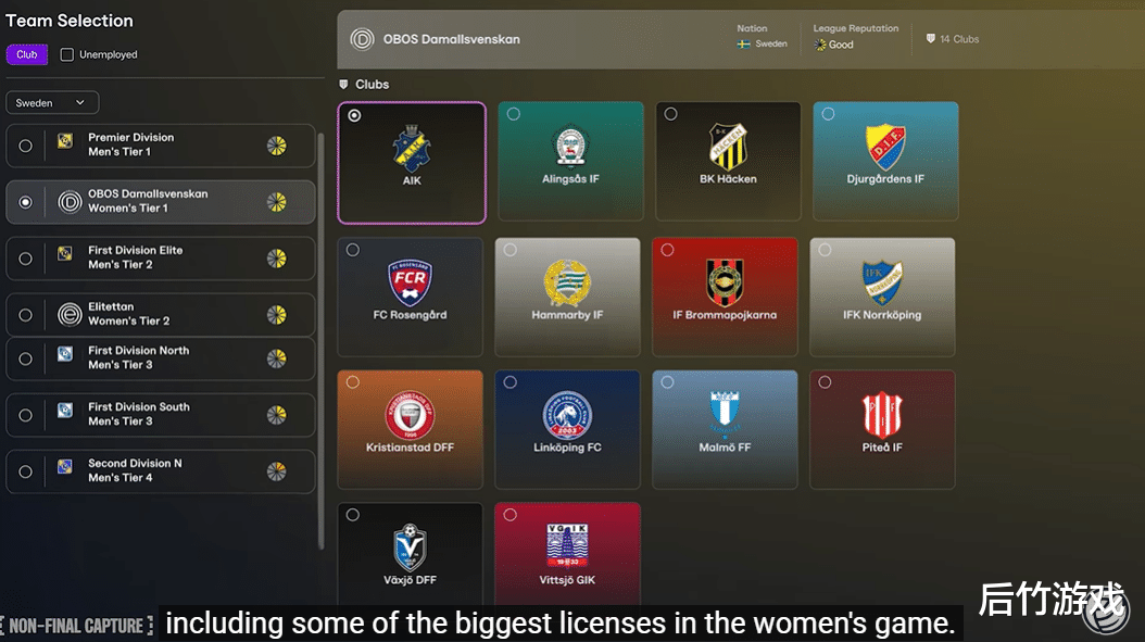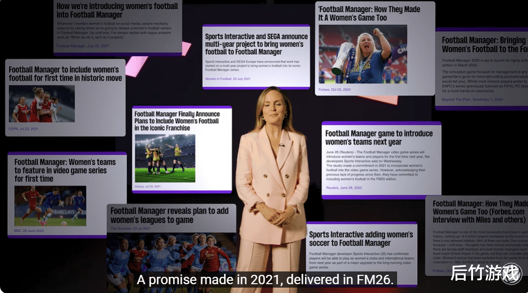 “我们非常高兴巴克莱女子超级职业联赛 及二级职业联赛 加入《古代足球 经理26》的大家庭,”Sports Interactive工作室的总监 Miles Jacobson 表示。“指导教练员和核心成员对于将女足引入游戏起到关键作用,职业联赛 本身也将得到真实呈现。我已迫不及待想要听到女足队员们的故事,测试她们的技能。”