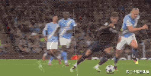 上半场进行到第21分钟,场上局面发生变化,接到福登的妙传,哈兰德顺势插上,形成单刀赴会,迪洛伦佐没有办法,只能从身后放铲,没有碰到皮球。