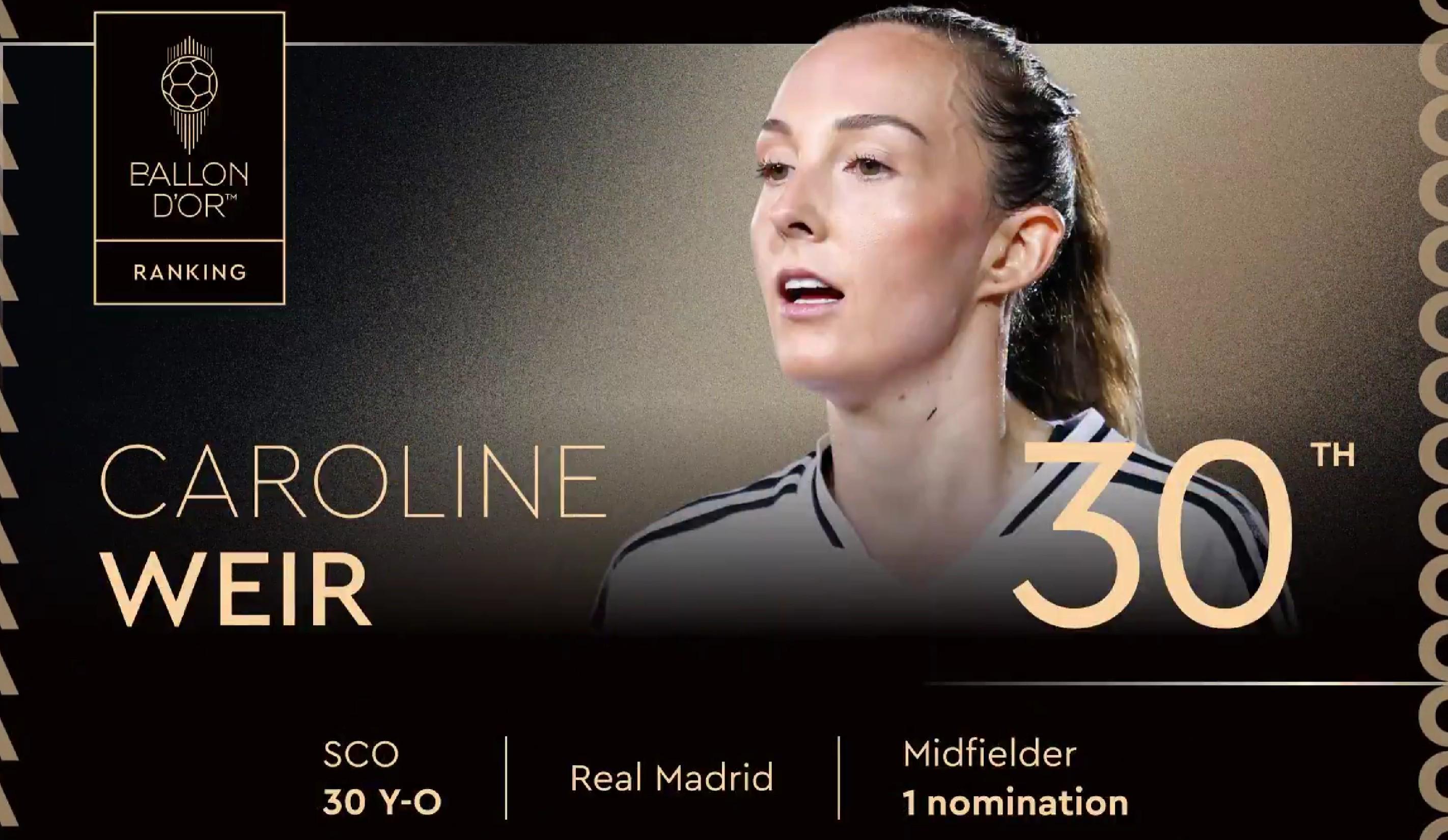 皇马女足中场球员卡罗琳-韦尔代表出席了今年的金球奖典礼。她在社交媒体上积极分享自己入围的消息,最终在女子金球奖评选中排名第30位。尽管俱乐部官方并未派出代表,但韦尔作为个人球员亮相,成为皇马在本届典礼上的唯一“白衣身影”。