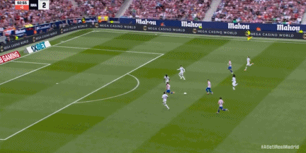 索尔洛特在半场结束之前将比分扳平,阿尔瓦雷斯连进两球,马竞4-2反超。第93分钟,巴尔韦德出现致命错误 ,巴埃纳妙传,格列兹曼单刀赴会破门,皇马连丢4球,2-1变2-5。