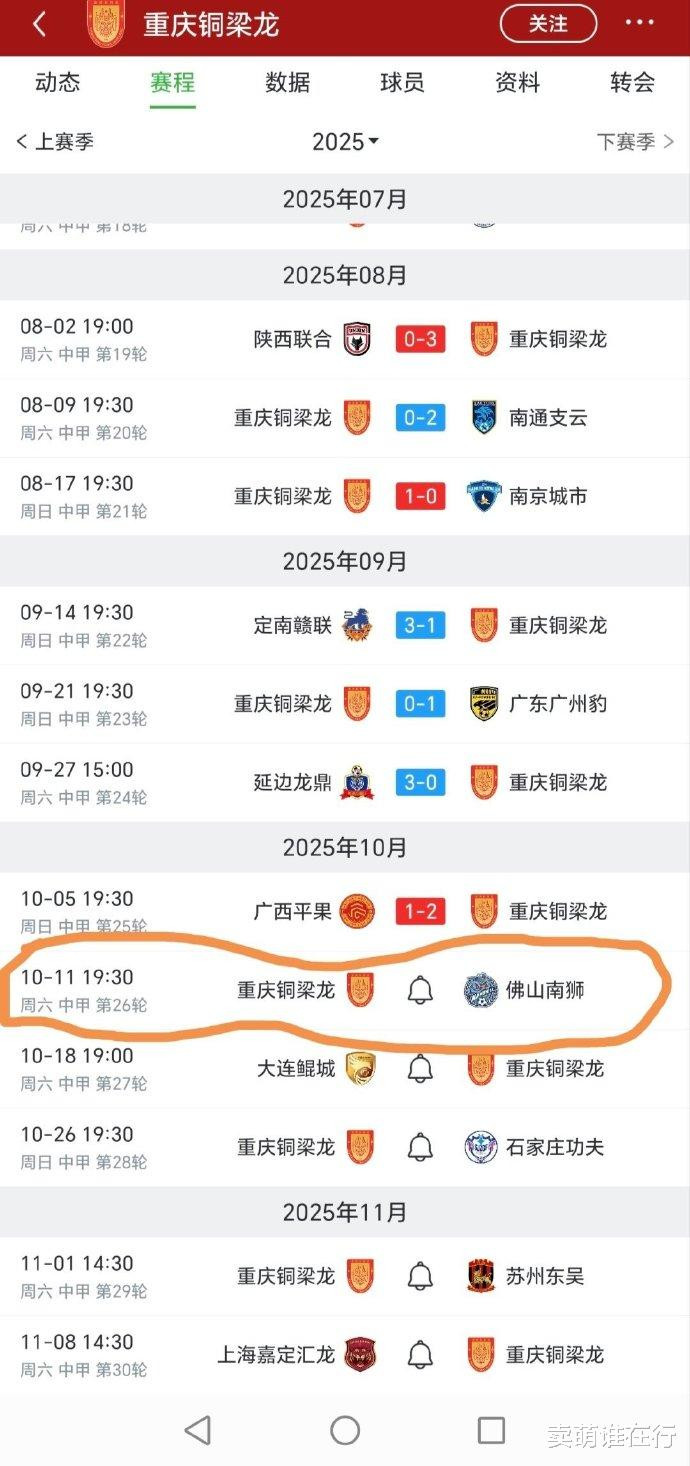 你认为恒大的管理队伍 ,会希望广州豹升级么?显然不希望啊!而铜梁龙最后5轮的对手是佛山南狮、大连鲲城、石家庄功夫、苏州东吴、上海嘉定。