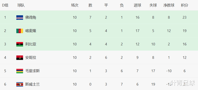 世预赛非洲区D组前9轮,佛得角9场20分,喀麦隆9场18分。佛得角vs斯威士兰,喀麦隆vs安哥拉。对佛得角来说,只要全取3分,就能锁定世界杯赛 席位。
