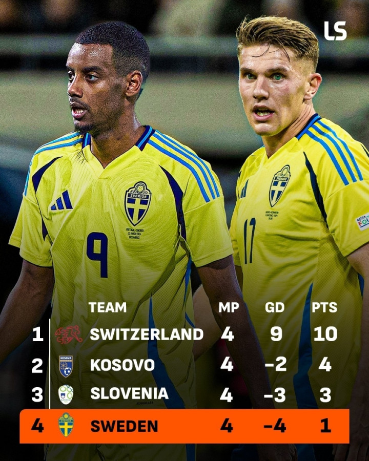 在北京时间10月14日凌晨结束的世界杯赛 欧洲区预选赛B组一场焦点战中,瑞典在主场作战 0-1不敌科索沃,开局4轮不胜并且遭遇3连败,提前无缘直通2026年美加墨世界杯赛 。